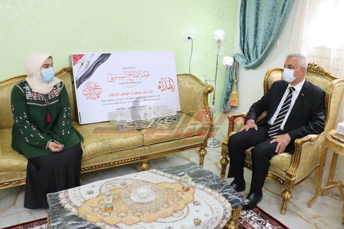 وأعرب مبارك عن خالص عزائه لأسر الشهداء، مؤكدًا أن مصر لا تنسى أبناءها وتقدر تضحياتهم وترعى أسرهم، مؤكدًا اهتمام رئيس الجمهورية بتكريم هؤلاء الأبطال الذين يمثلون خط الدفاع الأول فى مواجهة الأزمة، وهذه الهدايا تقديرا لما قدموه وفرصة لمشاركة أسرهم مناسبة عيد الفطر المبارك والتواجد بينهم وتقديم هدايا رمزية شملت (سجادة رُسم عليها صورة الشهيد، ومبلغ مالي، وشاشة تليفزيون حديثة LED، وكحك عيد الفطر المبارك).