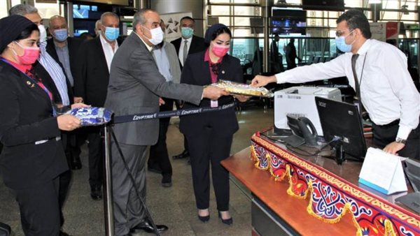 بالصور وزبر الطيران يتفقد مطار القاهرة ويهنئ المسافرين والعاملين بعيد الفطر المبارك