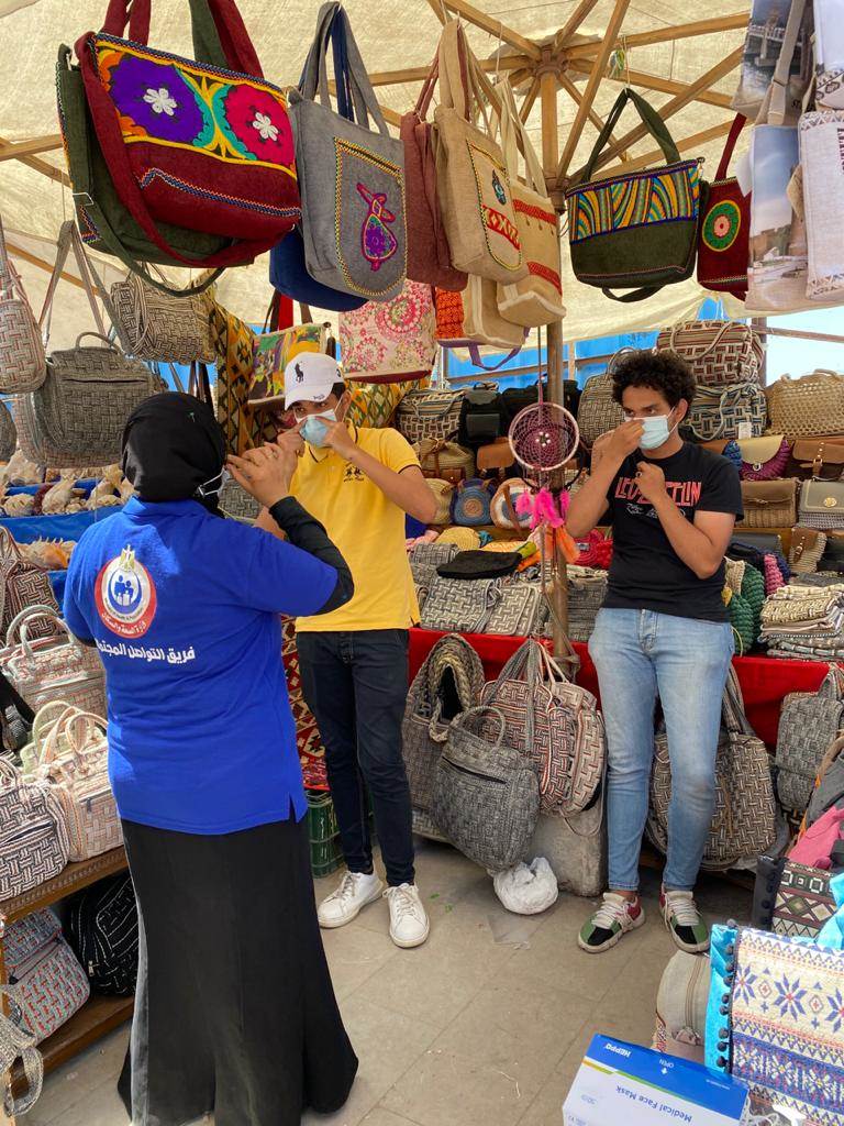 وتجوب الفرق مختلف أنحاء المحافظات، حيث تقوم بالمرور على الأسواق العامة، والمقاهي، ومحطات القطارات، والمواصلات العامة، ودور العبادة، والمحال التجارية، وأماكن التجمعات، بالإضافة إلى المرور على القرى بالتنسيق مع العمد والمشايخ، لتقديم التوعية الصحية للمواطنين بالإجراءات الوقائية والاحترازية لفيروس كورونا المستجد، أهمها ارتداء الكمامة، وغسل اليدين باستمرار بالماء والصابون أو فركها بالكحول، بالإضافة إلى أهمية الحفاظ على التباعد الاجتماعي، والتواجد في أماكن جيدة التهوية، ويتم تقديم شرح عملي للمواطنين بكيفية ارتداء الكمامة بطريقة صحيحة وكذلك كيفية التخلص منها بشكل أمن بعد استخدامها.
