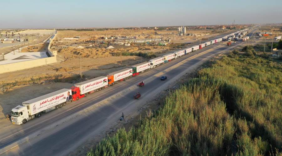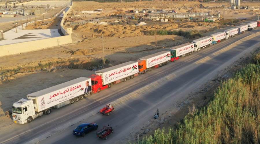 قافلة صندوق تحيا مصر تعبر نفق الشهيد أحمد حمدي في الطريق لقطاع غزة "صور"