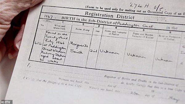 وتم تبني مارجريت هوجيت من قبل زوجين في ريكمانزورث، هيرتفوردشاير، بعد أن تركت على منصة في محطة لندن بادينغتون في عام 1946 عندما كانت طفلة. ولكن لم تكتشف أخيرا بدايتها المأساوية إلا في الأربعينيات من عمرها، حيث كشفت شهادة ميلادها أن والدتها البيولوجية ووالدها كانا "مجهولين". واعتقادا منها بأنها وصلت إلى فرصتها الأخيرة للعثور على أي شخص على قيد الحياة قد يكون قادرا على إخبارها عن بداياتها، جندت مارغريت فريق Long Lost Family للمساعدة في العثور على أي أقارب على قيد الحياة. وقالت أثناء ظهورها في برنامج ITV يوم الثلاثاء، "إن معرفة سبب التخلي عنها هذا هو الدافع للعثور على والديها الحقيقيين". وبعد وضع حمضها النووي في قاعدة بيانات على الإنترنت وجدت مارغريت تطابقا مع امرأة مقيمة في أستراليا تدعى كارول، والتي تبين أنها أخت غير شقيقة لأب لطفلين، ويلتقي الاثنان عبر مكالمة فيديو. ولم تخبر مارغريت التي أمضت عامين في دار للأيتام قبل تبنيها، الحقيقة بشأن بدايتها في الحياة حتى طلبت رؤية ملف التبني عندما كانت في منتصف الأربعينيات من عمرها، حيث كشفت الوثيقة التي أظهرها الأخصائي الاجتماعي أن اسم ولقب الأم غير معروف. وبحثا عن إجابات سافرت مارغريت إلى مركز ديدكوت للسكك الحديدية التابع لشركة Great Western Trust في أوكسفوردشاير، حيث كشف الباحثون تفاصيل سجل محطة بادينغتون في الأربعينيات وعرض عليها مقال نشر حينها تحت عنوان "التخلي عن طفل حديث الولادة على مسار قطار". وكشف التقرير أن مارغريت تم التخلي عنها في حدود الساعة 3.35 مساء على المنصة 9 ووجدها حارس يدعى CH Cook. وبعد وضع الحمض النووي الخاص بها على قاعدة بيانات على الإنترنت لتعقب أقاربها، وبعد تحقيق استمر لمدة ثلاث سنوات في التطابقات الأولية، اكتشف فريق البحث هوية كل من والدتها الأصلية ووالدها وبعد إجراء مقابلة مع امرأة تدعى كارول تبين أنها أخت مارغريت غير الشقيقة، ويتشاركان الأب نفسه. وفي حديثها من منزلها في أستراليا، اعترفت كارول بأن والدها آرثر كان يعلم على الأرجح أن لديه طفلا آخر لكن لا يعلم أنها تركت وحدها. وقالت صحيفة "ديلي ميل" البريطانية إن والد كارول كان يبلغ من العمر 19 عاما فقط وكان في الجيش عندما ولدت مارغريت، وتوفي عام 2010. وأشارت الصحيفة البريطانية إلى أن والدة مارغريت وتدعى هانا توفيت أيضا في عام 1992 عن عمر يناهز 69 عاما.