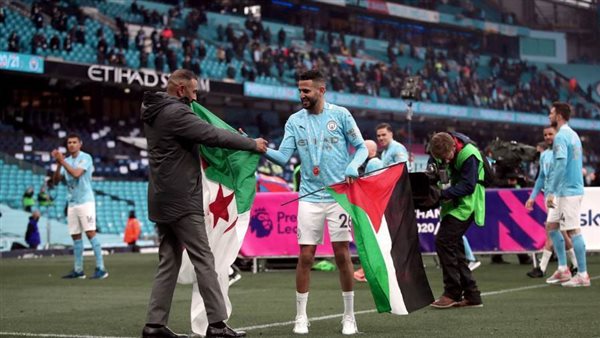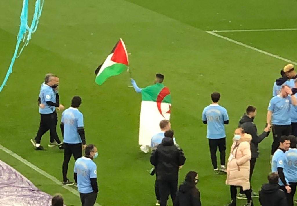 رفع الدولي الجزائري رياض محرز، نجم فريق مانشستر سيتي الإنجليزي لكرة القدم، علم دولة فلسطين بجانب علم بلاده، عقب تتويج فريقه باللقب الإنجليزي.