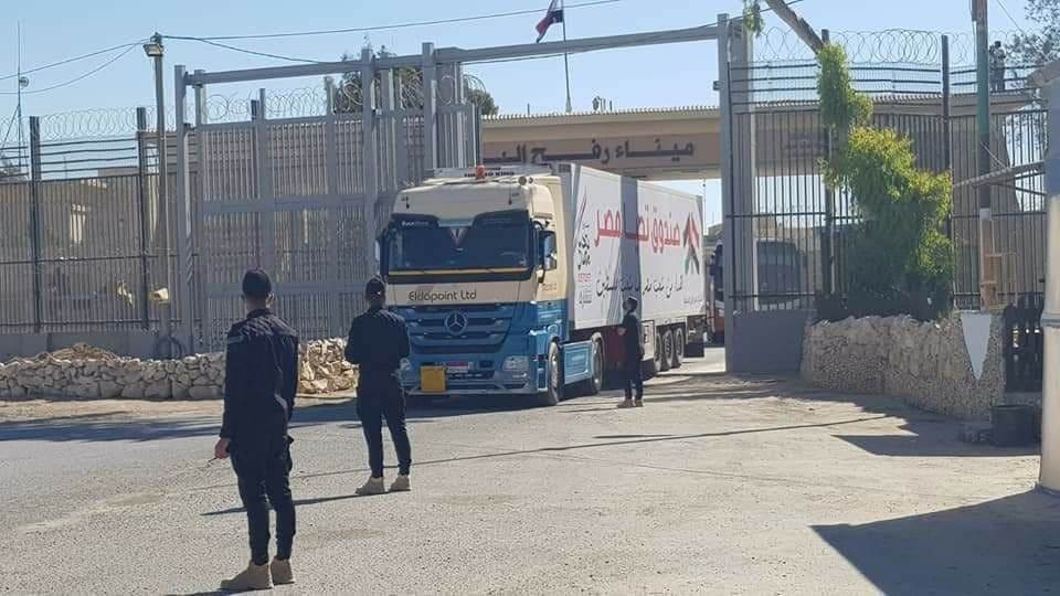 وأعلنت المصادر في معبر رفح أنه تم إدخال عدد 130 شاحنة وتتضمن قافلة صندوق تحيا مصر 130 حاوية محملة بأكثر من 3 آلاف طن من المواد الغذائية والأدوية والمستلزمات الطبية والملابس والأغطية والمطهرات والكمامات وغيرها من المساعدات الانسانية، مشيرا الى أنه تم تفريغها وتسليمها الى مسؤول السلطة الفلسطينية بمعبر رفح لنقلها الى الجانب الفلسطيني.
