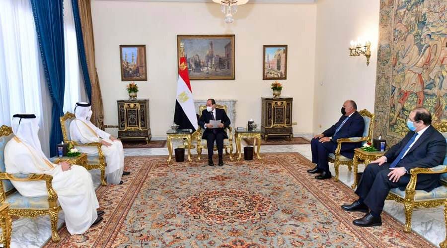 وصرح المتحدث الرسمي باسم رئاسة الجمهورية، بأن وزير الخارجية القطري نقل إلى الرئيس السيسي رسالة من الشيخ تميم بن حمد آل ثان أمير دولة قطر، التي تضمنت توجيه الدعوة للرئيس السيسي لزيارة الدوحة، والإعراب عن التطلع لتعزيز التباحث بين البلدين حول سبل تطوير العلاقات الثنائية، وكذا مناقشة مستجدات الأوضاع الإقليمية والدولية، وتنسيق المواقف بشأنها، بما يخدم تطلعات الدولتين.