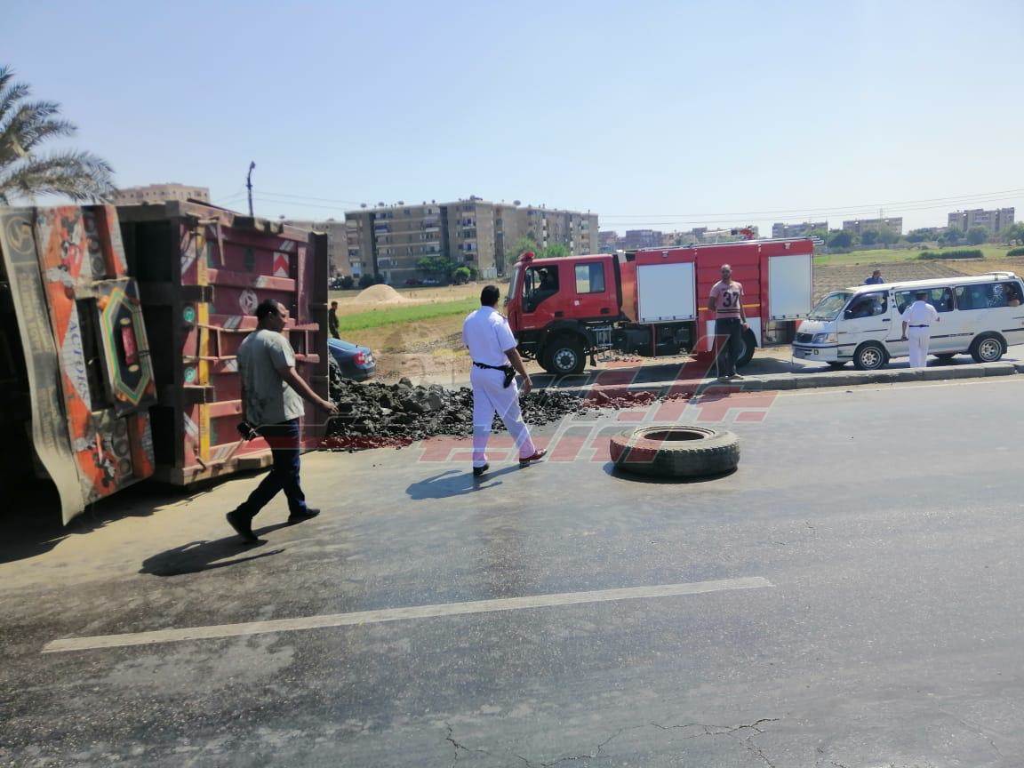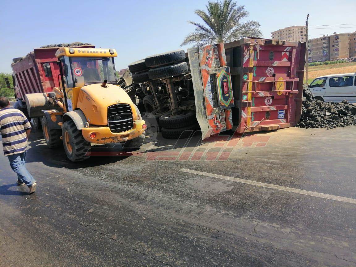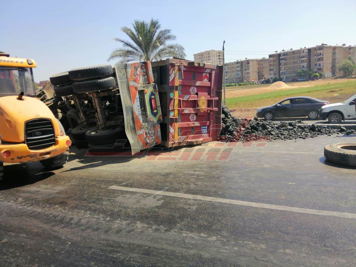 انقلاب سيارة محملة "بازلت" بكوبري قها