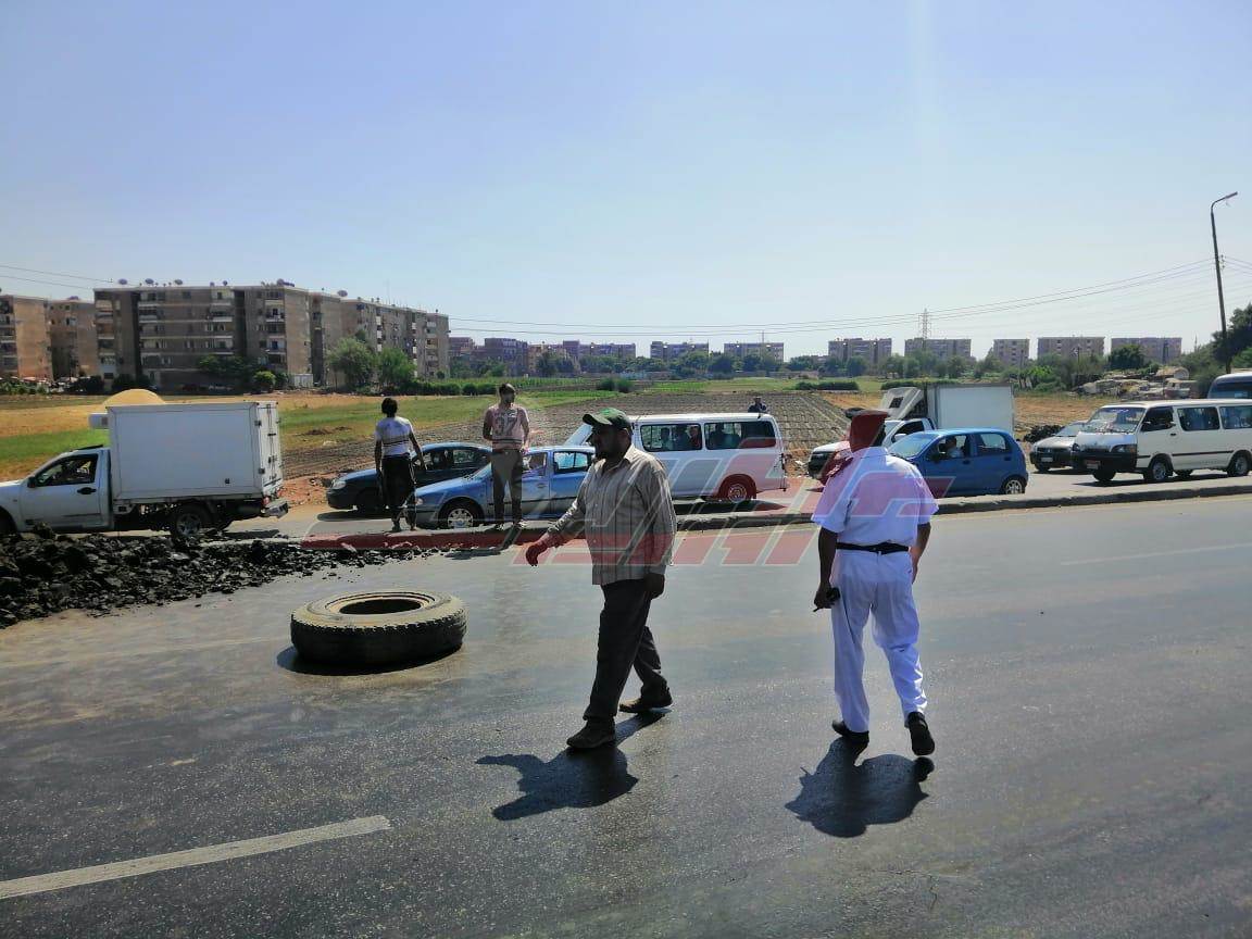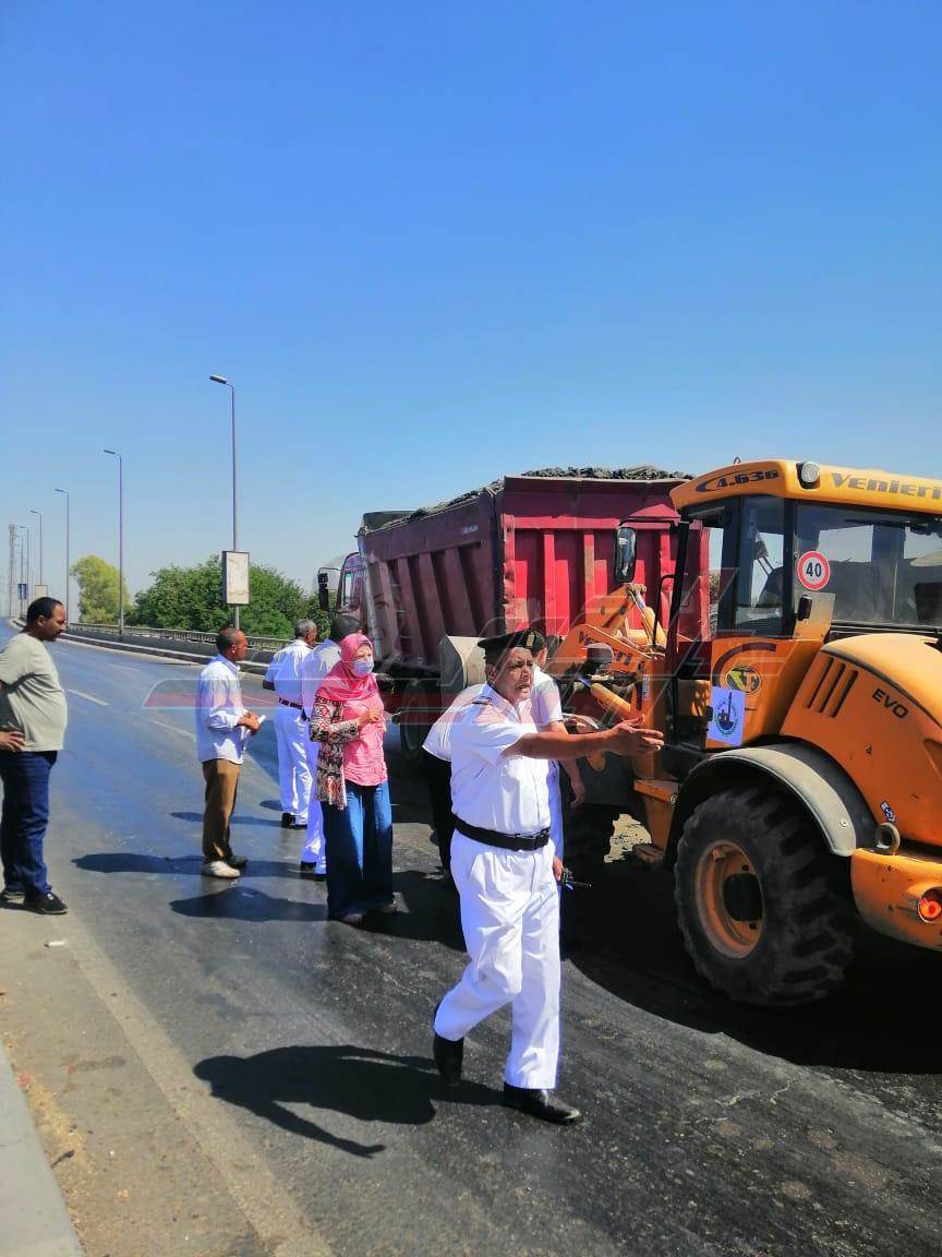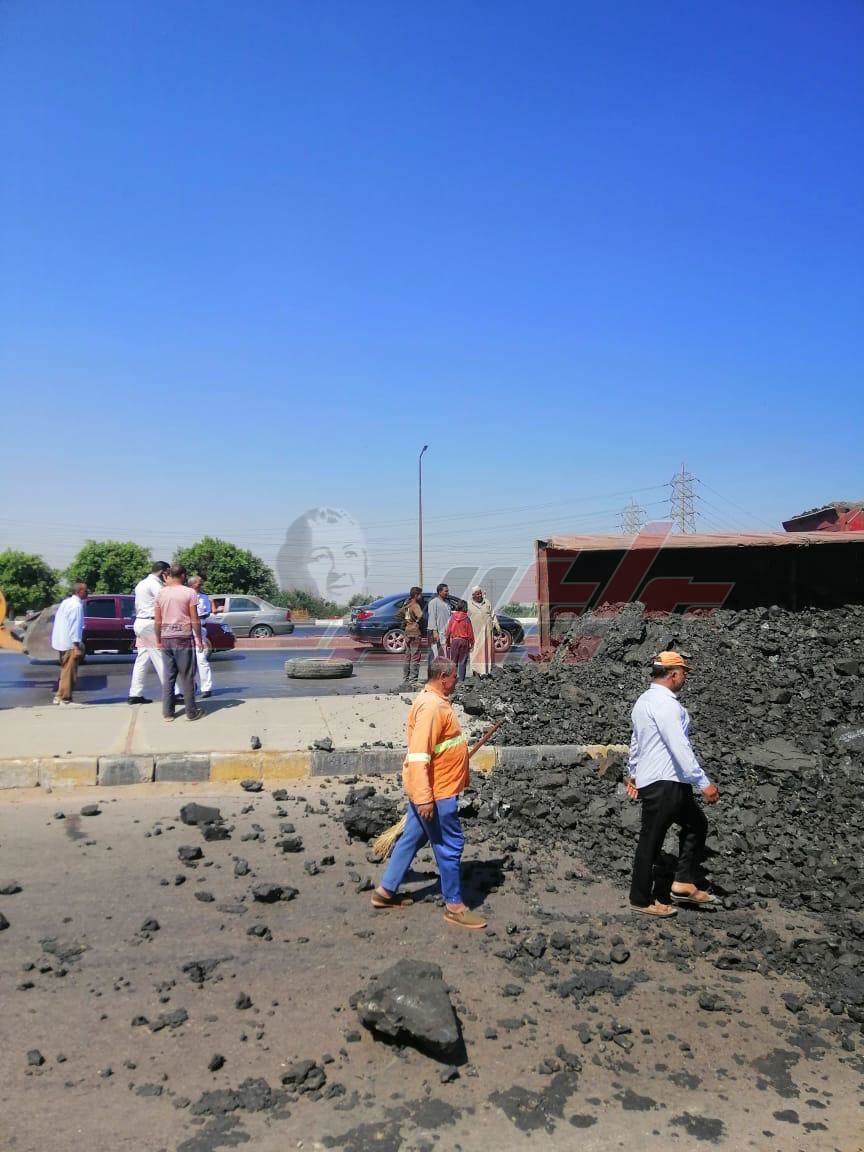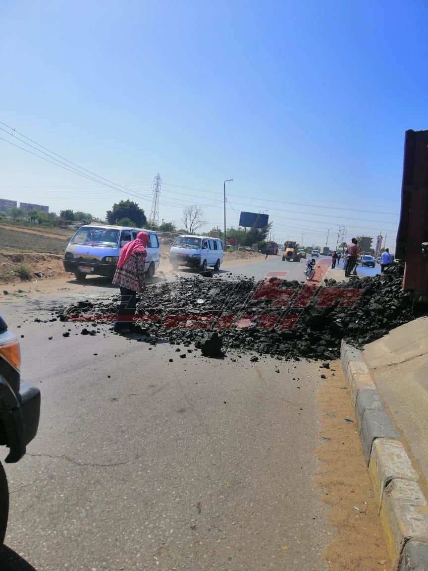 انقلاب سيارة محملة "بازلت" بكوبري قها
