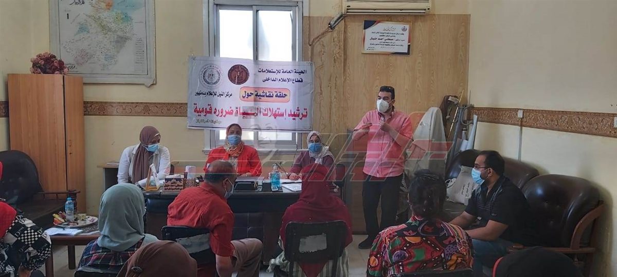 نظم مركز النيل للإعلام بالتعاون مع شركة مياه الشرب والصرف الصحي ومديرية الصحة بالبحيرة ندوة توعوية بعنوان "ترشيد استهلاك المياه ضرورة قومية" بالإدارة الصحية بمركز كفر الدوار حاضر فيها الدكتورة أمل فودة مدير الثقافه الصحية والبيئة بمديرية الصحه بالبحيرة وإيهاب عبد الحميد أخصائي التوعية والعلاقات العامه بشركة المياه بالبحيرة.