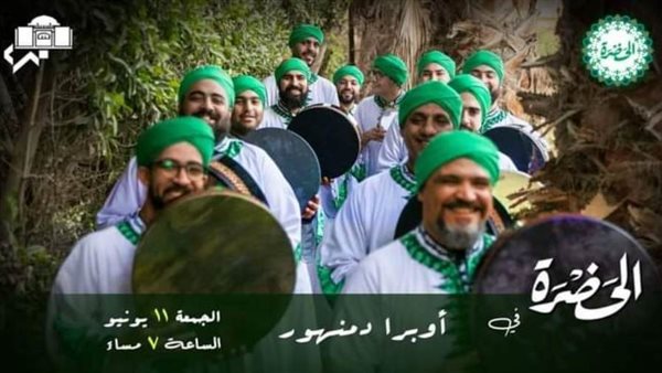 تنظم دار الأوبرا المصرية برئاسة الدكتور مجدي صابر سهرة غنائية روحانية تحييها فرقة الحضرة للإنشاد الصوفي فى الساعة السابعة مساء يوم الجمعة ١١ يونيو على مسرح أوبرا دمنهور، وتقدم الفرقة مجموعة من الأغاني والابتهالات الدينية والقصائد الصوفية.