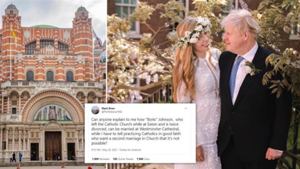 تساءل الكاثوليك الساخطون عن سبب السماح لرئيس الوزراء المطلق مرتين بالزواج مرة أخرى في الكنيسة، حيث تزوج بوريس جونسون وكاري سيموندس في حفل خاص أمس أمام مجموعة من أفراد العائلة والأصدقاء في كاتدرائية وستمنستر الكاثوليكية.