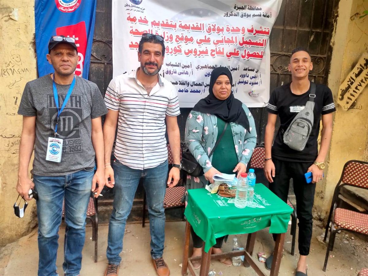 وقال إبراهيم المالح أمين تنظيم بولاق القديمة: إن التسجيل لتلقي اللقاح المضاد لفيروس كورونا يأتي وفقا لشروط وزارة الصحة التي تم وضعها للحصول على اللقاح لمختلف الفئات العمرية المصرح لها به ويأتى ذلك انطلاقًا من الدور المجتمعي للحزب، برعاية المستشار عبدالوهاب عبدالرازق، رئيس الحزب، وتنفيذًا لتوجيهات المهندس أشرف رشاد الشريف، الأمين العام، حيث دخلت المبادرة حيز التنفيذ من خلال إبراهيم شنودة أمين القسم ووائل صلاح محجوب أمين التنظيم.