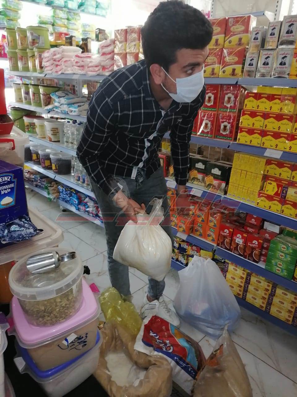 و بالمرور علي الأسواق والمخابز ومحطات بيع الوقود والمحال التجارية ومحال بيع المواد الغذائية تم ضبط:- (كميات من المواد الغذائية مختلفة الأنواع و بودرة عصائر منتهية الصلاحية - سكر أبيض ناقص الأوزان - وكميات من سمك الماكريل غير صالحة للاستهلاك الآدمي - 1000 عبوة بويات بإجمالي 15 طن مجهولة المصدر بأحد المخازن - 350 قطعة ملابس مختلفة الأنواع مجهولة المصدر.