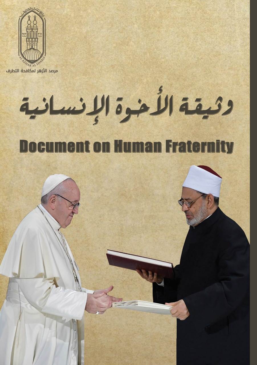 تتويجًا لجهود فضيلة الإمام الأكبر شيخ الأزهر الشريف وقداسة البابا فرانسيس، بابا الفاتيكان، وانطلاقا من تعاليم الشريعة الإسلامية السمحة التي حثَّت على الحوار مع أصحاب الديانات الأخرى، من أجل تعزيز التفاهم بين أتباع الديانات، وإرساء قيم المواطنة، وترسيخ مفهوم التسامح وقبول الآخر- كانت وثيقة الأخوّة الإنسانية التي وقعها الأزهر الشريف وحاضرة الفاتيكان في فبراير 2019م، والتي توَّجت عامًا كاملًا من العمل الدؤوب والجهد المُخلص بين الأزهر والفاتيكان، تلك الوثيقة التي تُعد شاهدًا على التطبيق العملي للحوار البناء، كما تُعد أيضا المخرج الآمن لمشكلات الإنسان في الشرق والغرب.