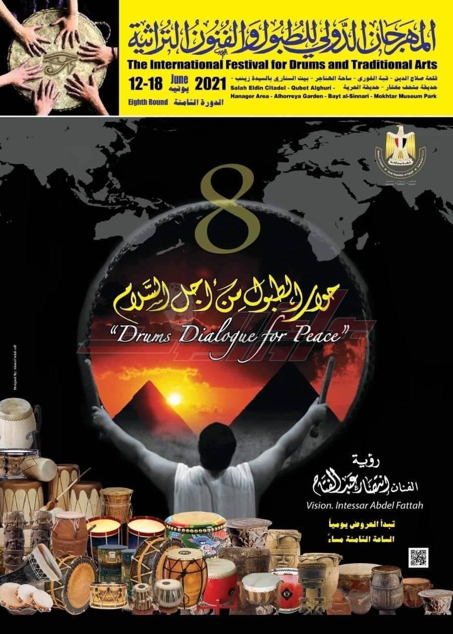 تفتتح الدكتورة ايناس عبد الدايم، وزيرة الثقافة، المهرجان الدولى للطبول والفنون التراثية فى دورته الثامنة الذي يترأسه الفنان انتصار عبد الفتاح رئيس ومؤسس المهرجان يوم السبت المقبل الموافق 12 يونيو ويستمر حتى 18 يونيو، وذلك على مسرح بئر يوسف بالقلعة فى تمام الساعة الثامنة مساءً تحت شعار "حوار الطبول من أجل السلام" ، حيث تحل دولتا كولومبيا وجنوب السودان ضيفا شرف المهرجان.