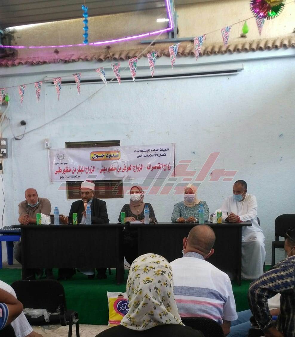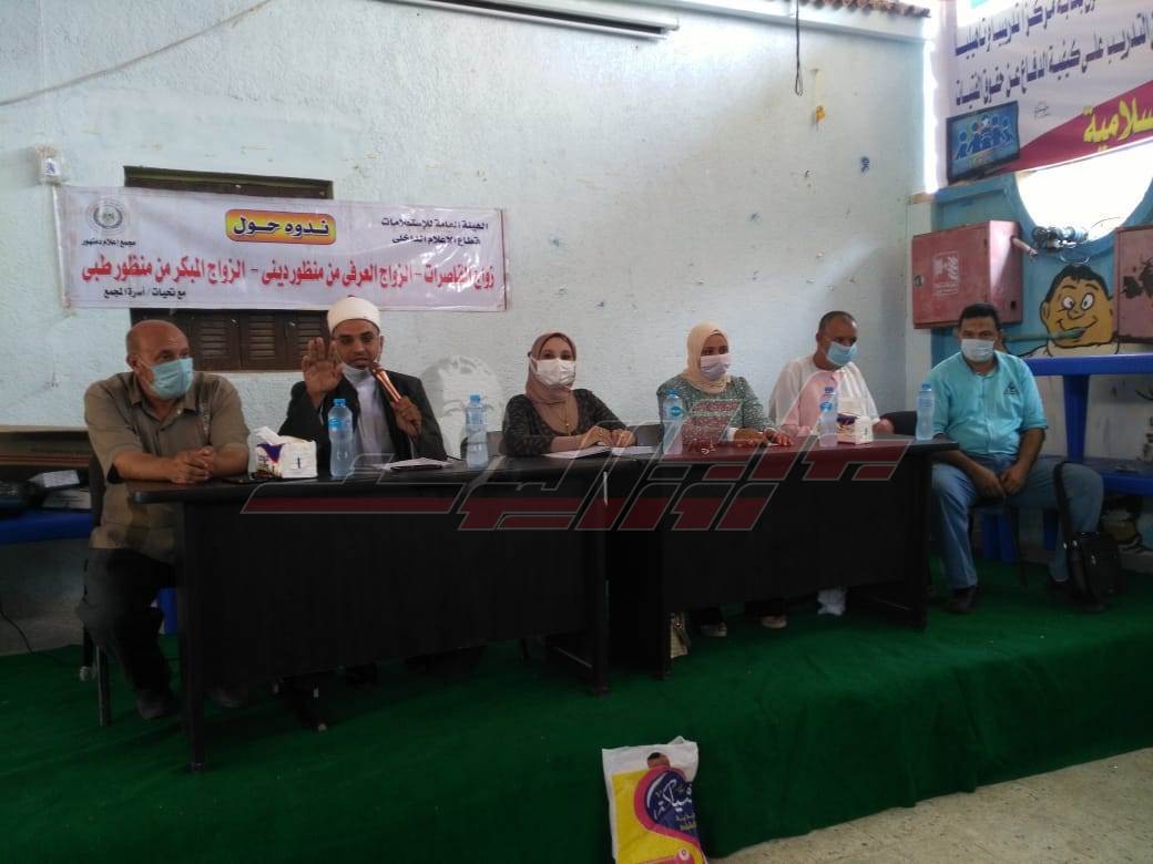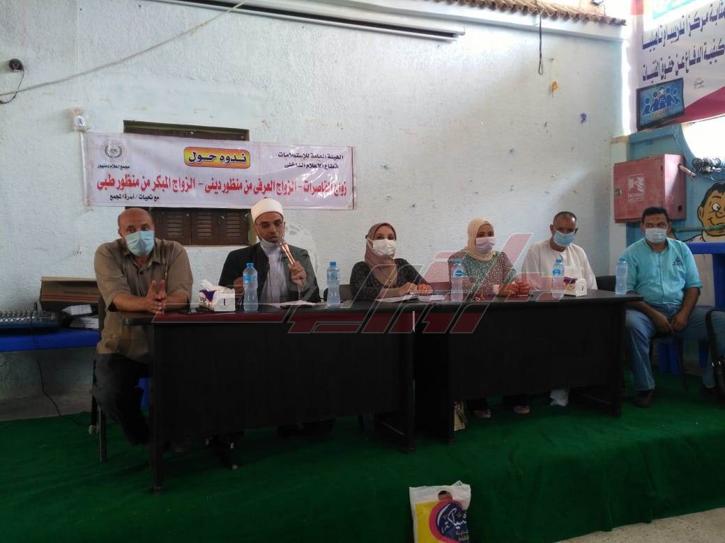 نظم مجمع إعلام دمنهور برئاسة إيمان قطب، بالتعاون مع مجلس قرية النخلة البحرية بمدينة أبو حمص وسط تطبيق الإجراءات الاحترازية للحد من عدوى فيروس كورونا ندوة إعلامية بعنوان "زواج القاصرات والزواج العرفى من منظور دينى وطبي".