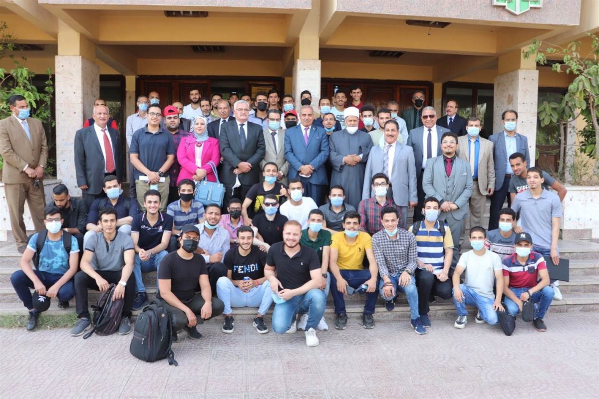 طلاب جامعة الأزهر يحرصون على التقاط الصور التذكارية مع رئيس الجامعة