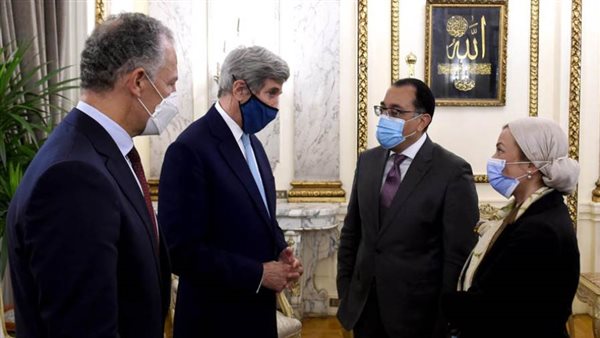 وقال المتحدث باسم مجلس الوزراء إن اللقاء تم خلاله استعراض جوانب التعاون الجاري بين مصر والولايات المتحدة في موضوعات البيئة وتغير المناخ، لا سيما في ضوء عرض مصر استضافة الدورة الـ27 لمؤتمر أطراف الاتفاقية الإطارية في 2022، حيث أكد رئيس الوزراء أن ملفات البيئة لم تعد ترفاً، ومصر من جانبها أخذت هذه الموضوعات بمنتهى الجدية، ولذا فهي واحدة من الدول القلائل التي التزمت بالوصول بنسبة الطاقة الجديدة في مزيج الطاقة المستخدم إلى ٤٢٪ خلال السنوات العشر القادمة، بالإضافة إلى توقيع مذكرة تفاهم مؤخراً مع إحدى الشركات الألمانية في مجال انتاج الهيدروجين الأخضر. في ذات السياق، أشار مدبولي إلى البرنامج الطموح لإحلال السيارات القديمة لتعمل بالغاز الطبيعي، وتشجيع التحول للسيارات الكهربائية، من أجل تحقيق أهداف التنمية المستدامة وتقليل الانبعاثات، هذا بالإضافة إلى قيام مصر بإصدار السندات الخضراء، واعتماد معايير الاستدامة البيئية للاستثمارات والمشروعات الوطنية، في خطة الدولة بدءاً من ٢٠٢١-٢٠٢٢. وأوضح رئيس الوزراء أنه في ضوء ما تعانيه مصر من شح الموارد المائية، فإن التوسع في إقامة محطات تحلية المياه، تم ربطه أيضاً باستخدام الطاقة الشمسية في تلك المحطات.