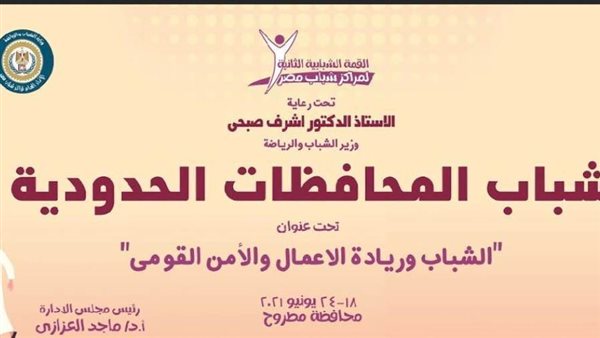 أعلنت وزارة الشباب والرياضة برئاسة الدكتور اشرف صبحي- وزير الشباب والرياضة، عن تنفيذ الاتحاد العام لمراكز شباب مصر بالتعاون مع اللجنة الوطنية المصرية لليونسكو وبالتنسيق مع الادارة المركزية لمراكز الشباب والهيئات الشبابية، القمة الشبابية لمراكز شباب مصر في نسختها الثانية لشباب المحافظات الحدودية من شمال وجنوب سيناء ومطروح والوادي الجديد والبحر الأحمر وأسوان، تحت عنوان "الشباب وريادة الاعمال والأمن القومي"، خلال الفترة من ٢٠-٢٤ يونيو، بمحافظة مطروح.