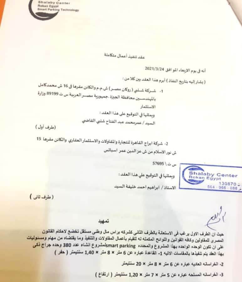 بالمستندات.. بلاغ يكشف حيلة للنصب على شركات المقاولات تحت مسمى"الجراجات الذكية"