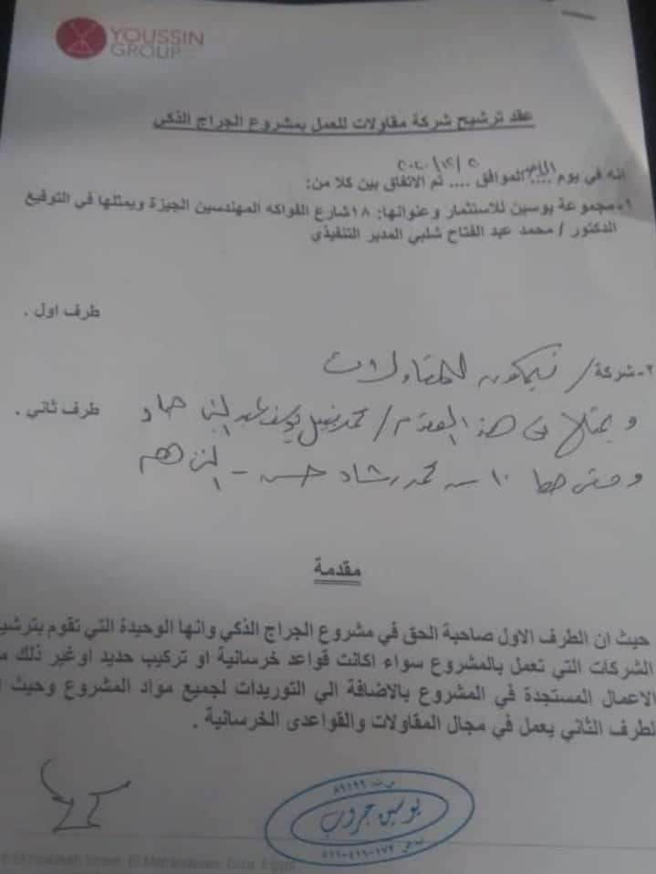 وأضاف في بلاغه لإفادة المهندس محمد يوسف رئيس مجلس إدارة "روكان" الشركة الأصلية بالمنصورة وهي المنفذة لمشروع الجراج الإلكتروني والمتعاقدة مع شركة حلوان للصناعات الهندسية التابعة لوزارة الإنتاج الحربي، بأنه حرر محضر بانتحال صفة شركته برقم 1362 لسنه21 إداري الدقى ضد الشركة المشكو في حقها "روكان مصر" وممثليها محمد شلبي ونجله عمر، وأنهما ليس لهما أي علاقة بالمشروع القومي للدولة.