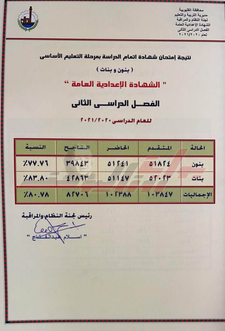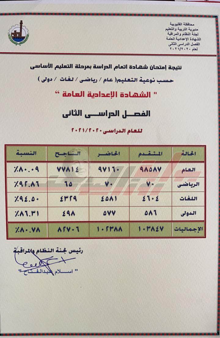 وأكد اللواء عبد الحميد الهجان محافظ القليوبية، اعتماد نتيجة التعليم العام بنسبة نجاح 80.09%، ونتيجة الرياضي بنسبة نجاح 92.86%، ومدارس اللغات 94.50%، ونتيجة الدولي بنسبة نجاح 86.31%.