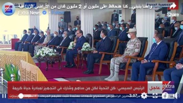 وأشار الرئيس السيسي فى كلمته: " لو أنتبهنا من سنين فاتت وأحنا بنبني، كنا هنحافظ على مليون أو 2 مليون فدان من الأراضي الزراعية".