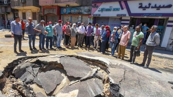 هبوط أرضي إثر انفجار خط صرف صحي رئيسي في الإسكندرية