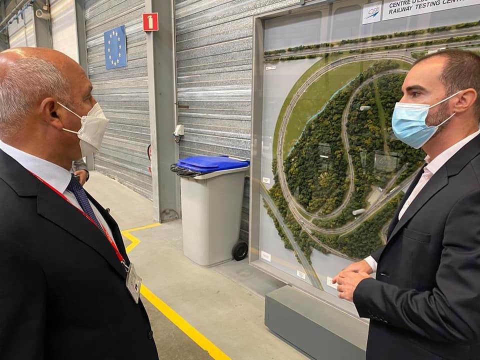 بعدها تفقد الوزير خطوط تجميع اجسام العربات المختلفة ومراحل التقفيل النهائي للعربات والدهان وتركيب الدواخل كما تفقد سيادته سكك اختبارات المصنع والتي يتم اجراء كافة اختبارات المسير عليها حيث يتم اجراء جميع الاختبارات الديناميكية الخاصة بالقطارات على هذه السكك قبل اصدار شهادة الصلاحية لها ، ثم استقل الوزير احد القطارات الجاري اختباره على السكة.