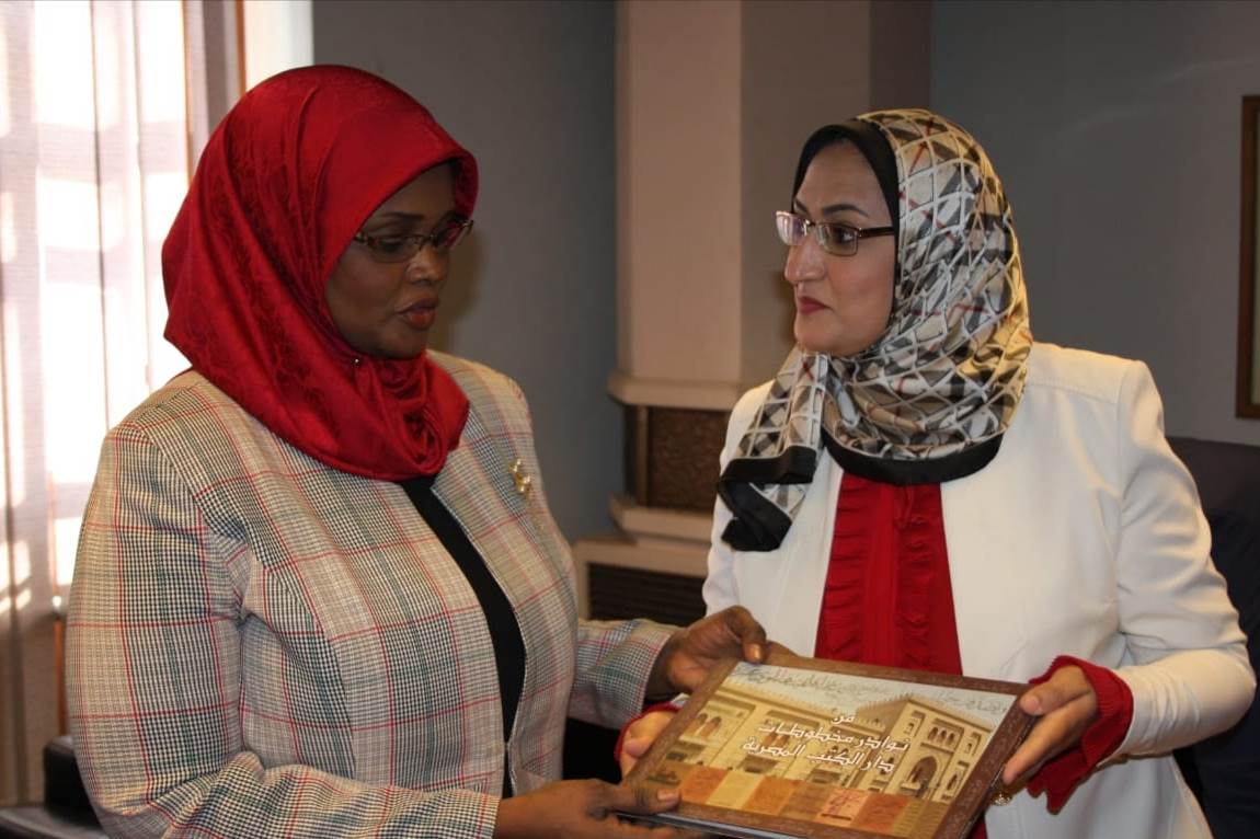 وقامت الدكتورة نيفين محمد في ختام الزيارة بإهداء الوزيرة مبروكة توجي عدد من الإصدارات المتميزة لدار الكتب والوثائق من أهمها: روائع فن الخط ، نوادر المخطوطات، وكنوز دار الكتب.