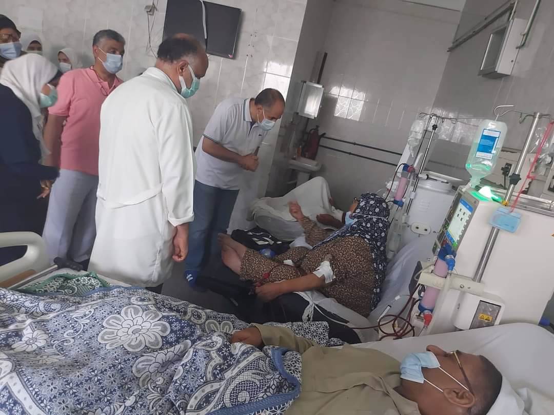 وتمت زيارة وحدة الغسيل الكلوي، والتواصل مع الطاقم الطبي والمرضى بها، والتأكد من تلقيهم العلاج على أكمل وجه، وزيارة وحدة الحروق ومتابعة أعمال التطوير بها.