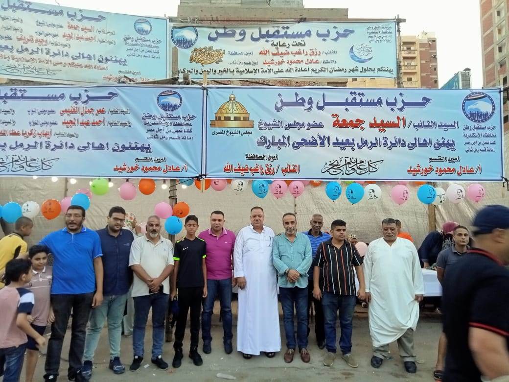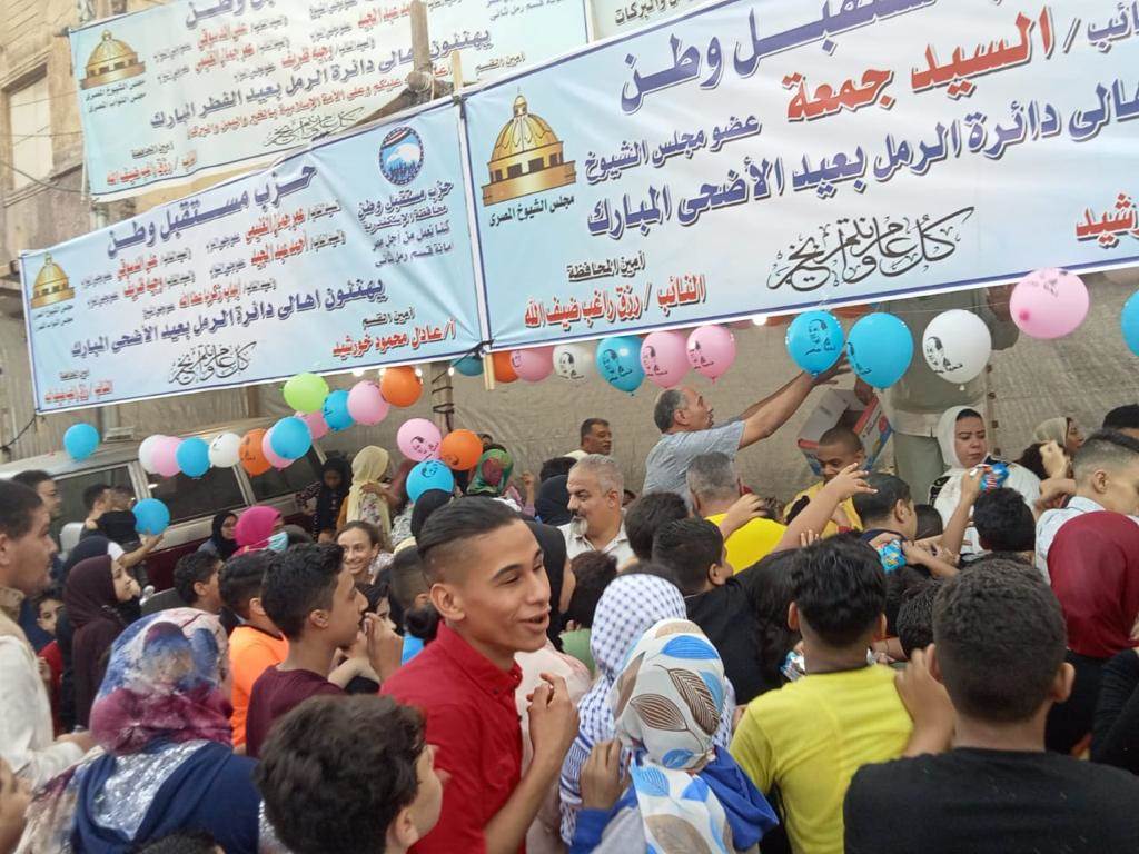 وزع حزب مستقبل وطن بالإسكندرية، برئاسة النائب رزق راغب ضيف الله، أمين الحزب بالمحافظة، هدايا وألعاب على الأطفال في الشوارع وأمام المنازل لإدخال الفرحة عليهم، وذلك انطلاقا من الدور المجتمعي للحزب، وتنفيذًا لتوجيهات رئيس الحزب المستشار عبدالوهاب عبدالرازق، والمهندس أشرف رشاد الشريف، النائب الأول لرئيس الحزب.