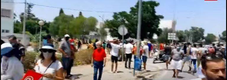 تزايد أعداد المتظاهرين المؤيدون لقرارات الرئيس التونسي أمام البرلمان.. (صور)