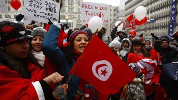 وعرضت فضائية إكسترا نيوز، لقطات من تجمع أبناء الجالية التونسية، حاملين أعلام بلادهم، وذلك لدعمها بما تمر به البلاد الآن.