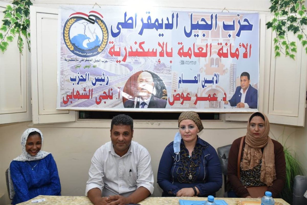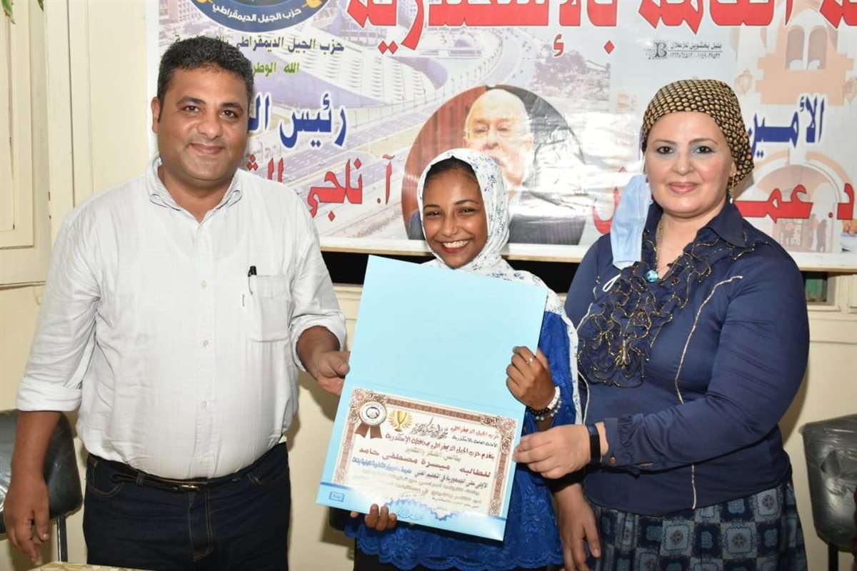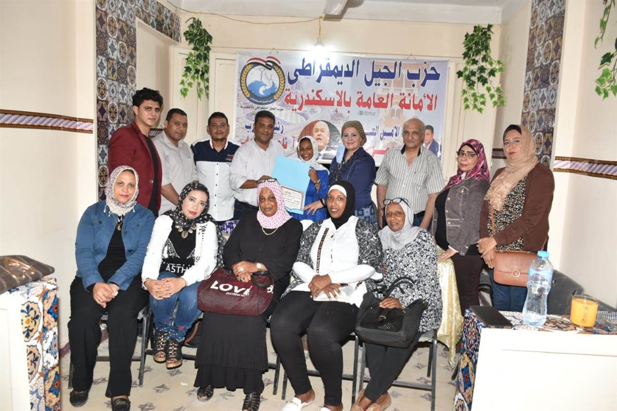 نظمت اليوم الأمانة العامة لحزب الجيل الديمقراطي بالإسكندرية احتفالا لتكريم الطالبة الحاصلة على المركز الأول على مستوى الجمهورية فى التعليم الفنى ابنة محافظة الإسكندرية وذلك بحضور عمر عوض الأمين العام للمحافظة ومصطفى غانم الأمين العام المساعد للعضوية والدكتورة هدى الساعاتى الأمين المساعد لشؤون الإعلام وبدور خطاب أمينة التواصل الجماهيري وايمن درويش أمين العمال واسلام الحارونى أمين دائرة باب شرق ومحمد السيد أمين مساعد الشباب وفاطمة حسن أمينة دائرة مينا البصل ومحمود ابراهيم أمين شباب دائرة الدخيلة وعدد من قيادات الحزب وأسرة الطالبة.