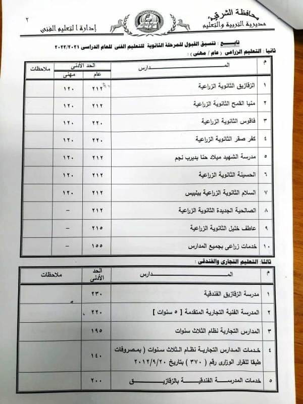 قرر الدكتور ممدوح غراب محافظ الشرقية، النزول بالحد الأدني لتنسيق القبول بالمرحلة الثانوية للناجحين في الشهادة الإعدادية العامة للعام الدراسي 2020/2021 ،علي أن يكون الحد الأدنى للقبول بالثانوي العام 230 درجة بدلاً من 238 درجة والثانوي العام خدمات 200 درجة بدلاً من 217 درجة.