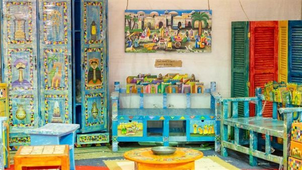 بعضها مرسوم بألوان الزيت، وبعضها محفور يدويا على الخشب، وملون بألوان الزيت، وكلها من أفكار محمود أحمد بغدادي، ابن مدينة الأقصر، خريج كلية التربية الفنية، الذي أراد أن يقدم تراث محافظته في قالب حديث"مودرن"، ليس فقط في شكل تابلوهات مرسومة كما كانت بدايته، بل موظّفة في منتجات عملية، مثل المقاعد والطاولات والدواليب والدكك وغيرها، لتجمع بين الجمال والوظيفة معًا.