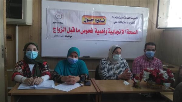 نظم مجمع إعلام دمنهور برئاسة إيمان قطب مدير المجمع بالتعاون مع مختلف الهيئات والمصالح الحكومية بدمنهور، ومع الأخذ بجميع الإجراءات الاحترازية للحد من عدوى فيروس كورونا؛ ندوة إعلامية حول "الصحة الإنجابية وأهمية فحوص ما قبل الزواج" بقاعة مجمع إعلام دمنهور.