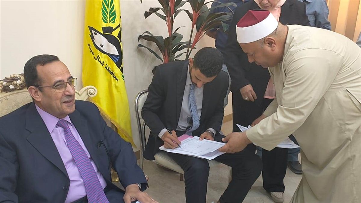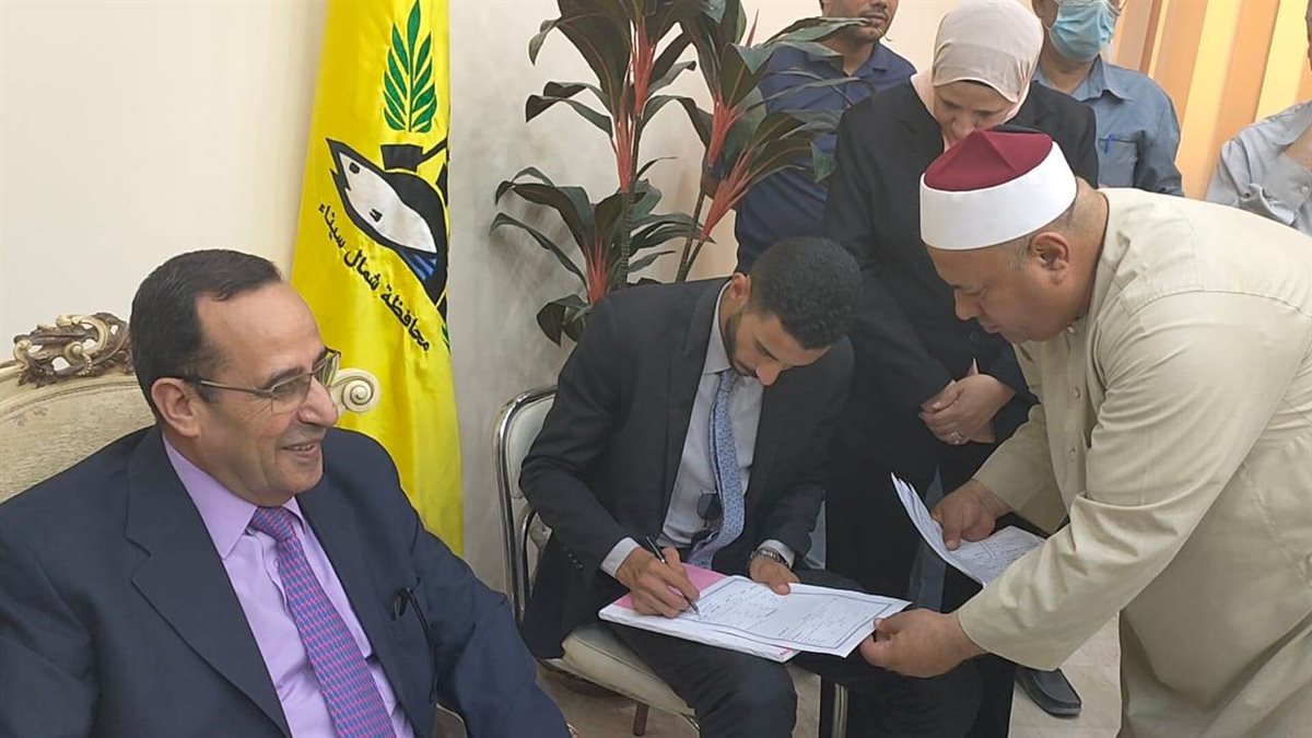محافظ شمال سيناء يشهد على عقد قران أول عروس من دار الأيتام