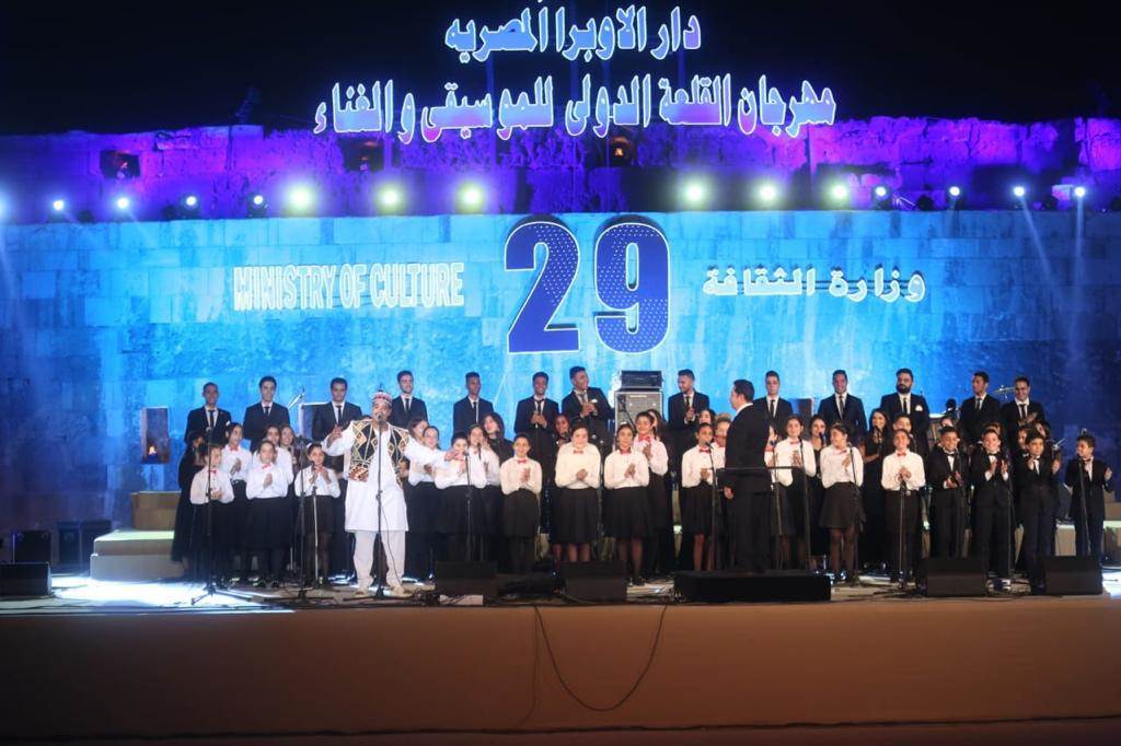 أكد أطفال وشباب مركز تنمية المواهب التابع لدار الأوبرا انهم حراس الفن والطرب العربي بعد تألقهم في الحفل الذي اقيم على مسرح المحكى وحضره 4 آلاف مشاهد ضمن فعاليات الدورة 29 من مهرجان قلعة صلاح الدين الدولي للموسيقى والغناء، وبرزت خلاله خصوبة أرض مصر الابداعية وقدرة أبنائها الواعدين على إعلاء راية صون الهوية الفنية وتضمن باقة مختارة من أعمال الموسيقى العربية التراثية والمعاصرة منها زي ما هي حبها، أغلى اسم في الوجود، يا حلو ناديلي، عطشان يا اسمراني، إن كنت ناسي، يا وابور قول لي، على بلد المحبوب، ساكن في حي السيدة، ع اليادي، امتى الزمان، يونس، صوت الجماهير، على اسم مصر، اذا مصر قالت، مصر هي امي.