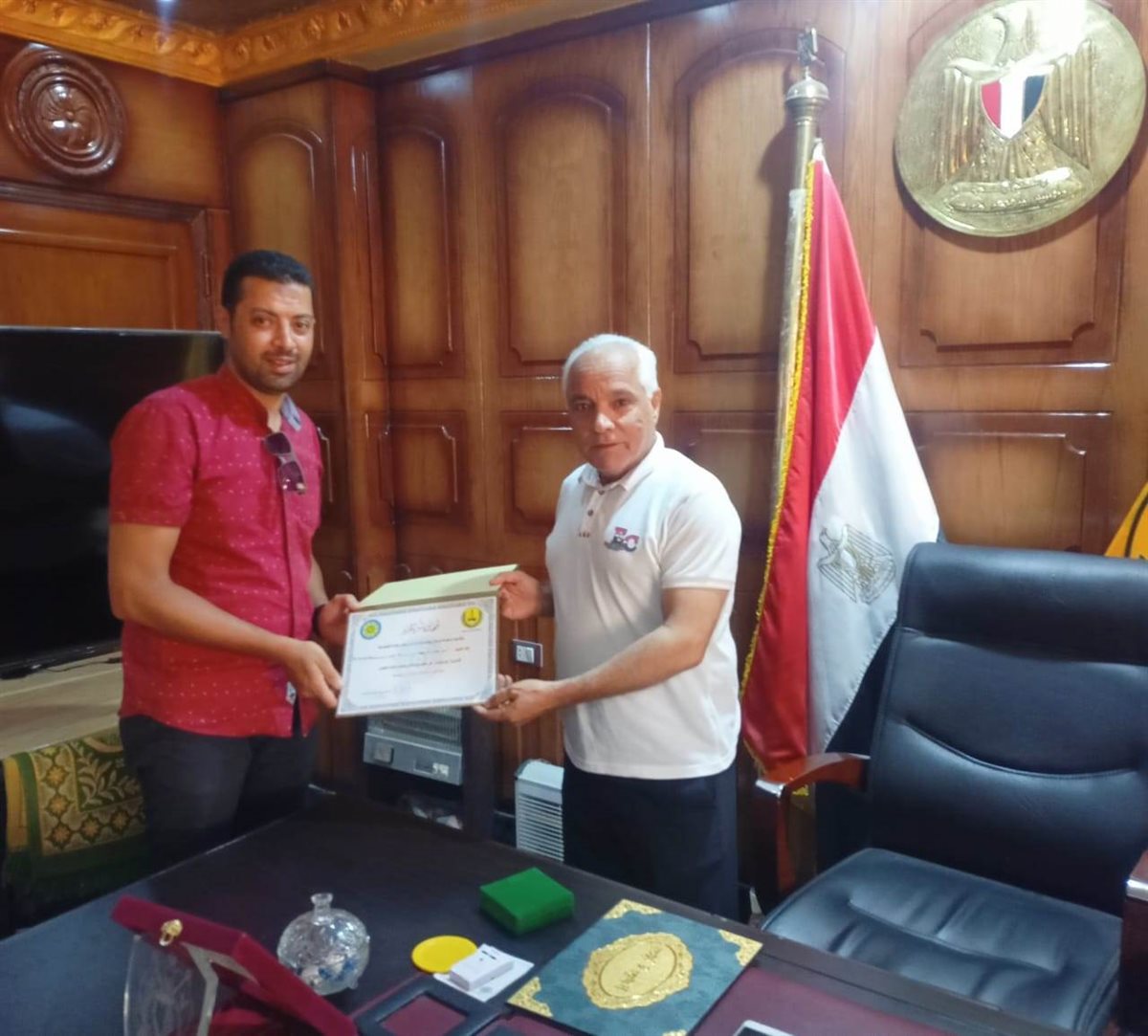 ومن جهة أخرى .. كرم سليمان فرج محمد رئيس مركز ومدينة نخل بوسط سيناء المشاركين في حملة استخراج الأوراق الثبوتية الرسمية للمواطنين الذين تخلفوا عن القيد فى السجلات الرسمية للدولة .. حيث تم منحهم شهادات تقدير، وذلك تقديرًا لجهودهم في استخراج الأوراق الثبوتية للمواطنين الذين تخلفوا عن القيد في السجلات الرسمية للدولة.
