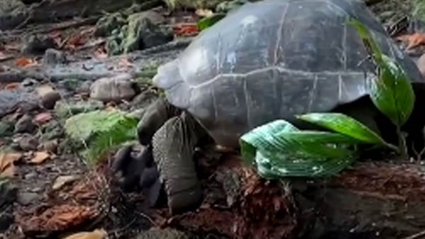 استحوذ دعاة الحفاظ على البيئة على اللحظة التي هاجمت فيها سلحفاة عملاقة طائرًا ناشئًا وأكلته في جزيرة فريجيت في سيشيل.
