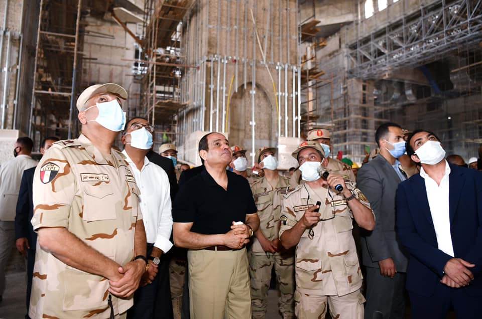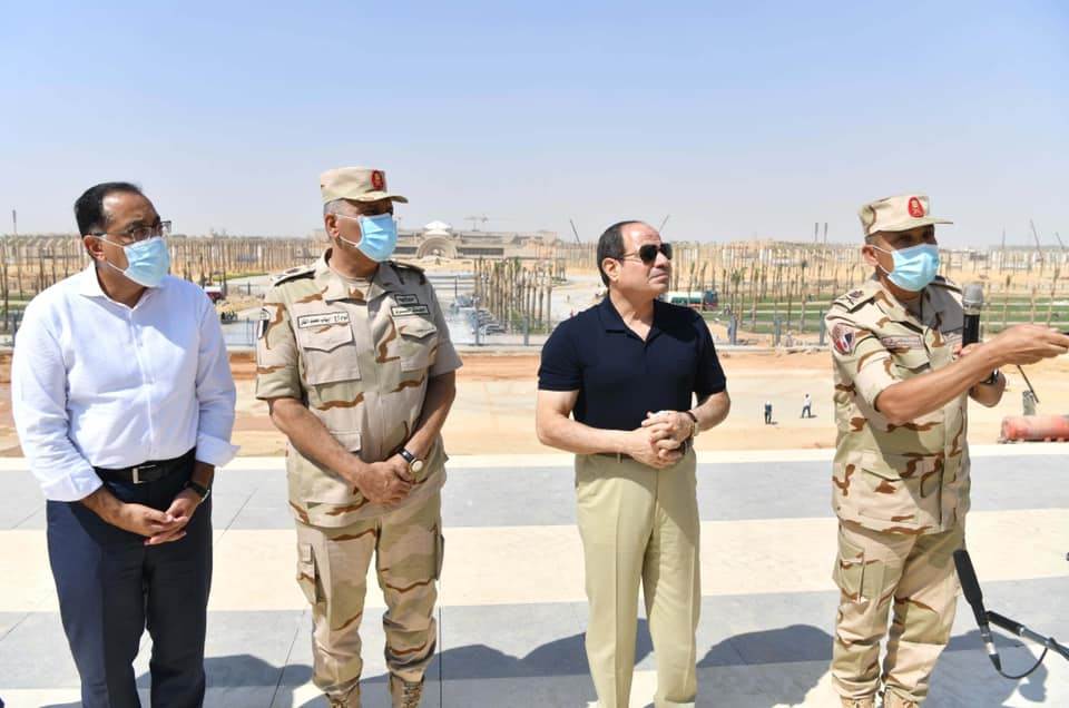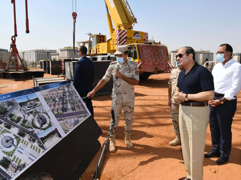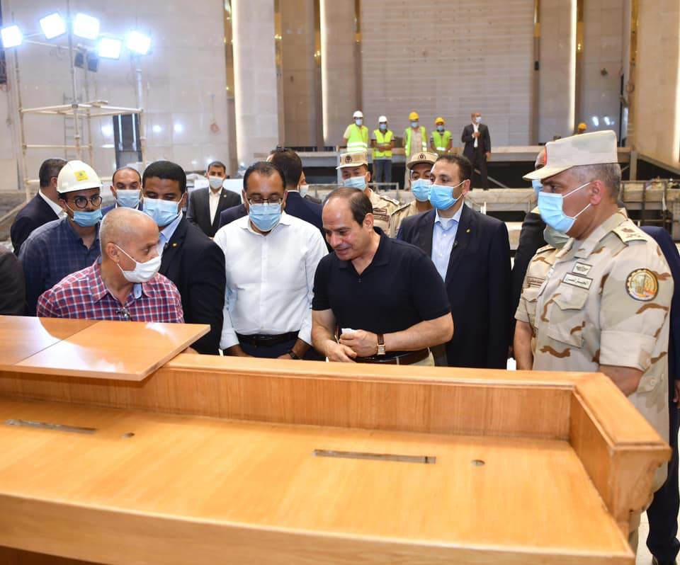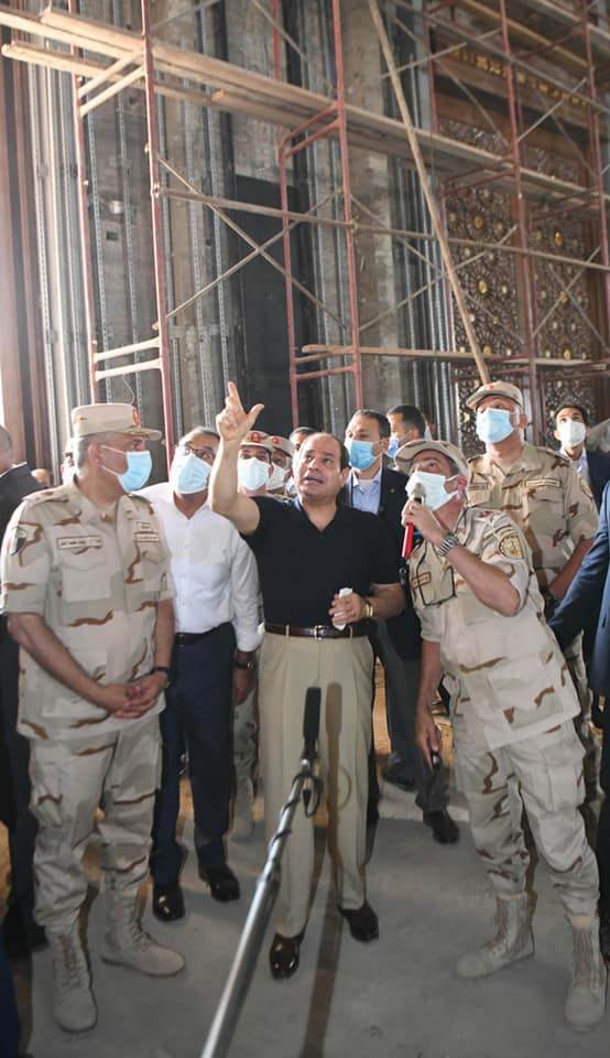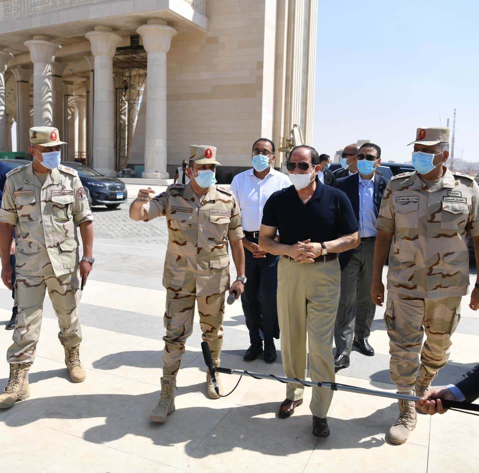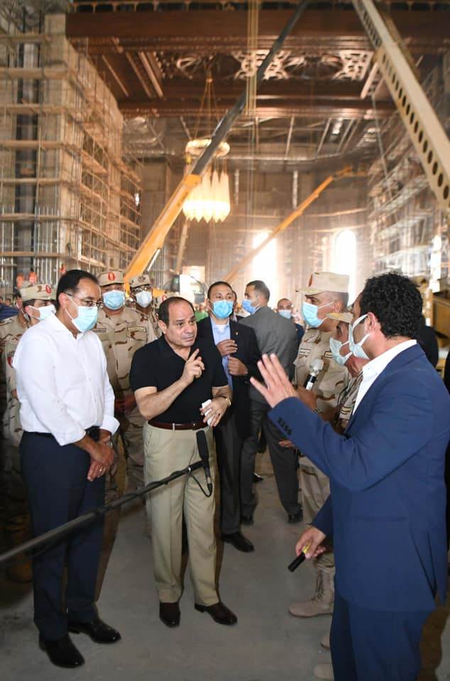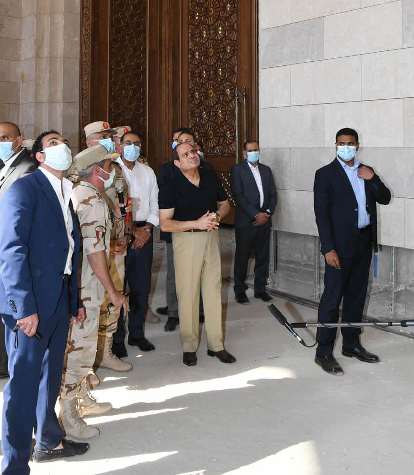كما تابع الرئيس الموقف التنفيذي لمسجد مصر، الذي يقع في نطاق مركز مصر الثقافي الإسلامي، والذي يعد من أكبر المساجد في العالم، ويتضمن مجموعة من القاعات الضخمة للاحتفالات والمناسبات وتحفيظ القرآن، كما تفقد سير الأعمال بساحة الشعب، بما فيها حديقة الشعب، والنصب التذكاري المقام على النمط الفرعوني، وأعمال تركيب ساري العلم الأطول عالميًا.