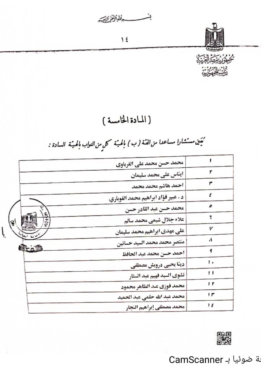 المادة الخامسة تضمنت تعيين 274 مستشارًا من الفئة ب