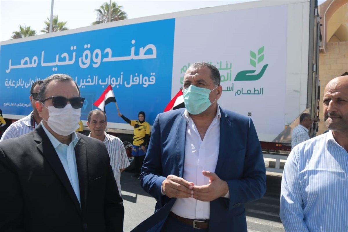 ومن جانبه .. أكد العميد أسامة الغندور سكرتير عام المحافظة أن القافلة تضم 5 شاحنات كبيرة محملة بعدد 24 ألف كرتونة مواد غذائية متنوعة ( 14 ألف كرتونة من بنك الطعام ، 10 آلاف كرتونة من مبادرة الرئيس ) .. الى جانب عدد 10 كراسى لوحدات الكلى الصناعية بمستشفيات المحافظة ضمن المبادرة الرئاسية : " كلنا جنبك " .