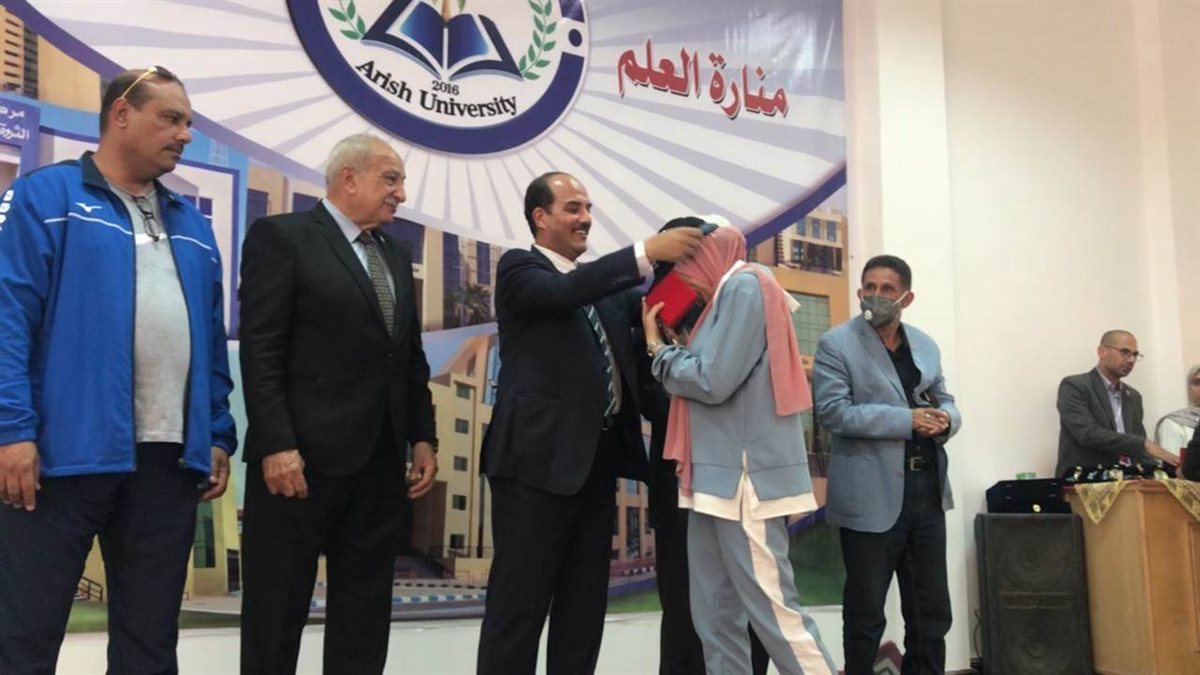 وفى ختام الملتقى تم تكريم شباب الجامعات من المشاركين في الأنشطة والفائزين في الأنشطة الرياضية بتوزيع الكئوس والميداليات وشهادات التقدير عليهم، كما تم تكريم مسؤولى الأنشطة ومديرى رعاية الشباب بالجامعات الخمسة، وذلك بحضور الدكتور طايع عبد اللطيف مستشار وزير التعليم العالى للأنشطة الطلابية، الدكتور صبحى حسانين نائب رئيس الاتحاد المصري للجامعات، الدكتور محمد الزغبى رئيس جامعة قناة السويس الأسبق، وعدد من عمداء ووكلاء وأساتذة وأعضاء هيئة التدريس وطلاب جامعة العريش وقيادات مديرية الشباب والرياضة .