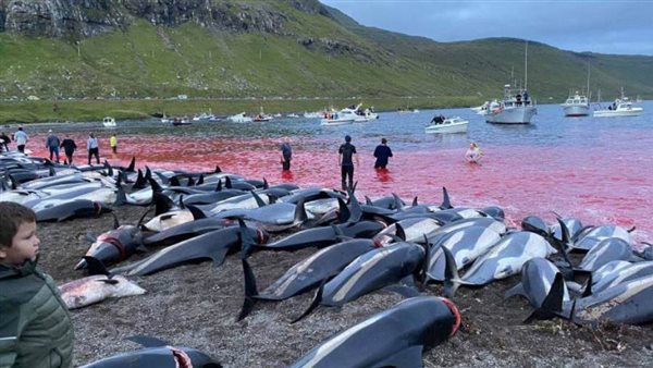 مذبحة غير مسبوقة لنحو 1500 من الدلافين قبالة سواحل جزر فارو خلال يوم واحد فقط.
