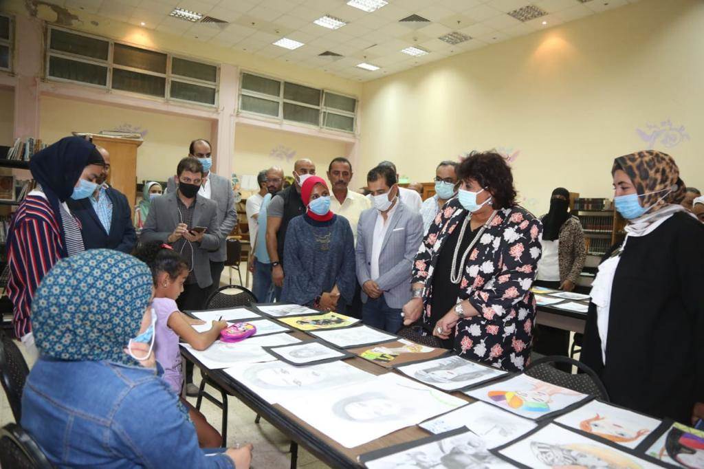 كما تفقدت مجموعة من اعمال نتاج ورش الخط العربي والرسم بالاركيت واشادت بمستواها الفني.