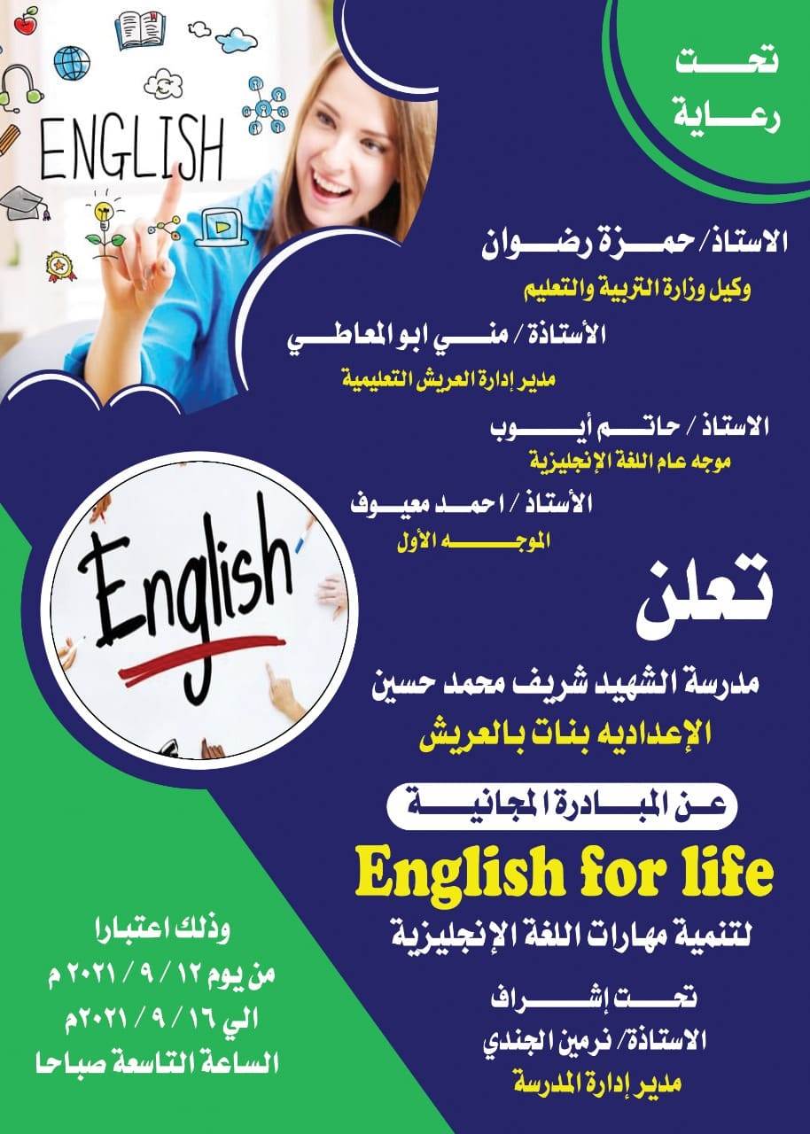 ومن جانبها.. أكدت منى أبو المعاطي مدير عام ادارة العريش التعليمية أهمية مشاركة جميع موجهي ومعلمي اللغة الانجليزية بالمراحل المختلفة في المبادرة لرفع مستوى الطلاب في اللغة الإنجليزية وبذل أقصى جهد من أجل إنجاح المبادرة.. مشيرة الى أنها خطوة مهمة نساعد بها لبناء طلابنا علميا ومهاريا في اللغة الإنجليزية.