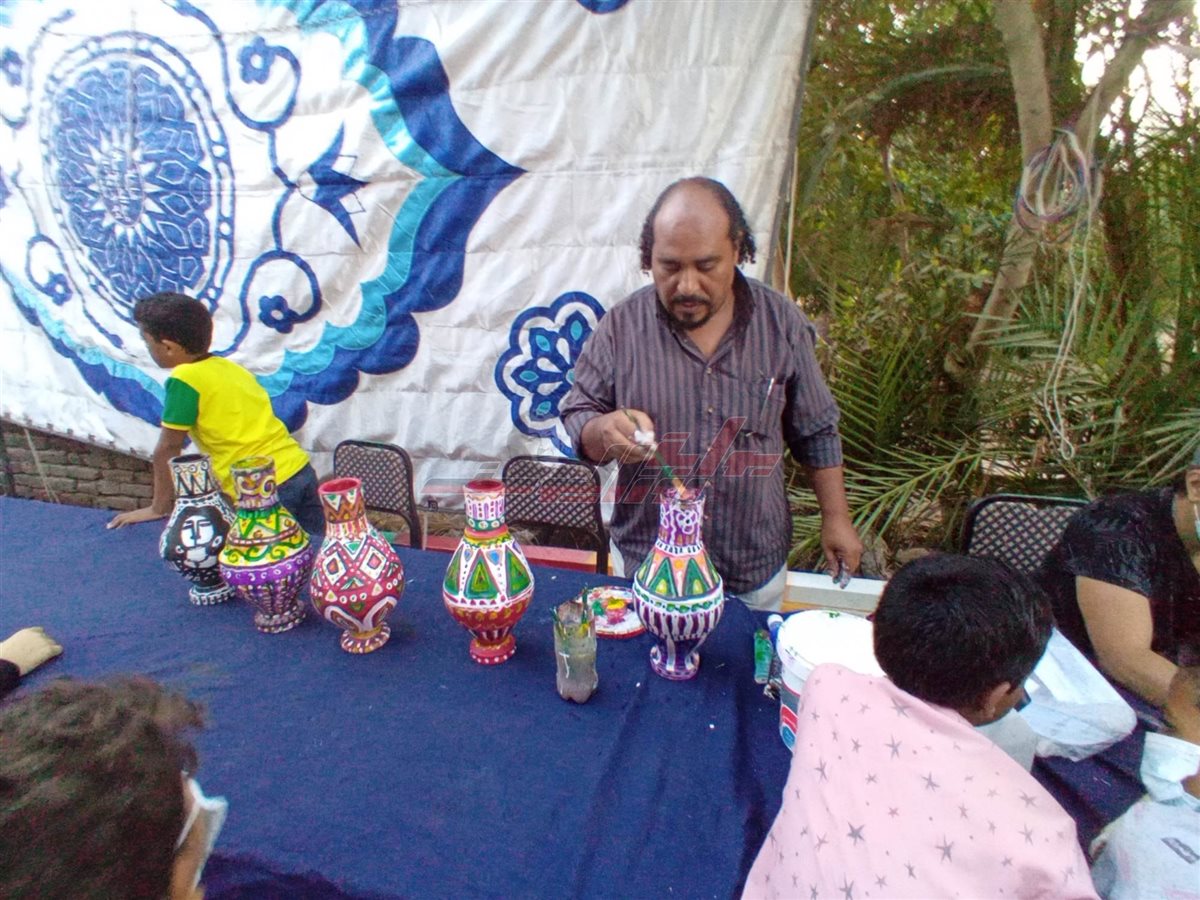 وتضمنت الفعاليات تنفيذ مجموعة من الورش الفنية والتراثية والتي تشرف عليها مرفت حامد من الإدارة العامة للمرأة بهيئة قصور الثقافة، وهي ورشة مجسمات خرز إشراف الفنانة حورية عصمت، وورشة طرق على النحاس إشراف الفنان مصطفى إسماعيل، وورشة عجائن سيراميك إشراف الفنانة شيرين عفيفي، وورشة رسم وتلوين على الخزف إشراف الفنان أحمد الدندراوي، ورشة سجاد نول الفنان بيومي فوزي، وورشة خيامية للفنان كريم خلف، ورشة نشر وتفريغ النحاس وتشكيل الحلي للفنانة رانيا المهدي، حيث شهدت الورش اقبال كبير من الأطفال لتعلم الحرف التراثية.