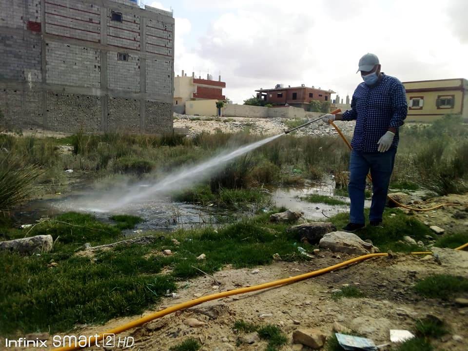 وقال المهندس صبحى الفرماوى رئيس الوحدةأنه تم اليوم الاثنين تغطية برك المياه الراكدة فى حى الشرابجة بالعريش بالمبيدات اللازمة لمكافحة يرقات البعوض والبعوض البالغ.