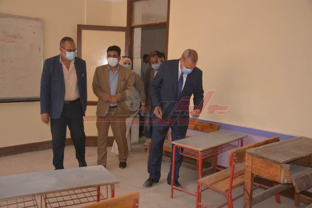 وقام الهجان بتفقد فصول وحجرات ودورات المياه المدارس للوقوف على مدى جاهزيتها قبل بدء العام الدراسي الجديد وتأكد من وجود بوابات التعقيم بها، وشدد على استكمال أعمال الصيانة البسيطة مثل أعمال الكهرباء و إضاءة وتنظيف زجاج الفصول، وخلال الجولة تابع أعمال النظافة ودهان الأسوار.